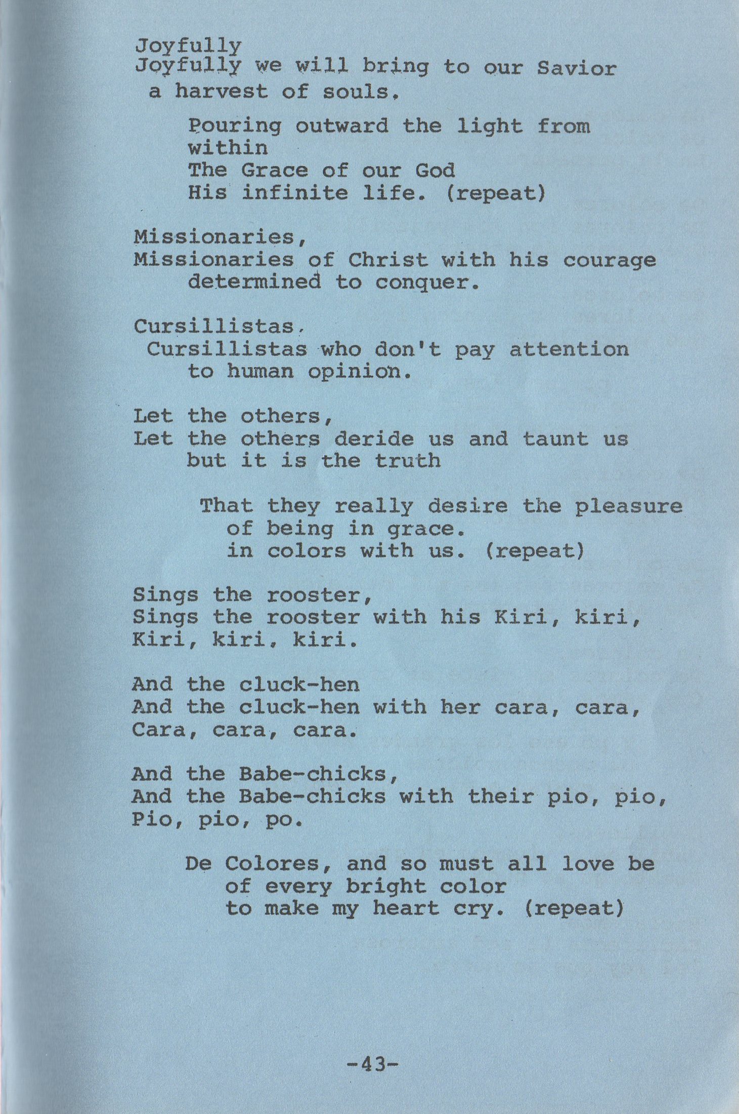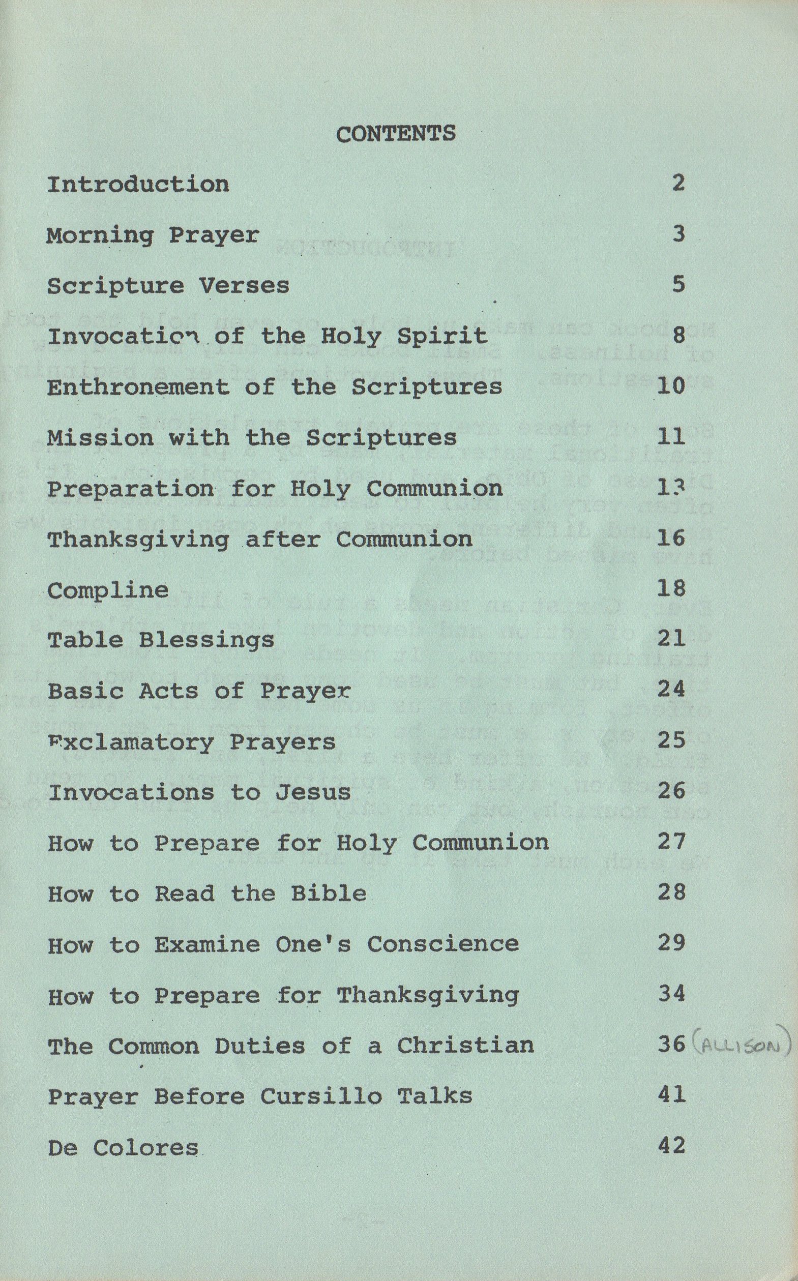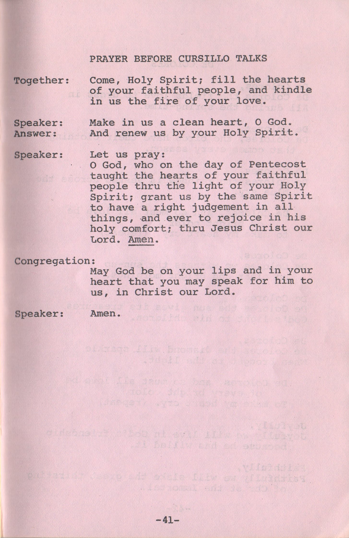| Prayer Before Cursillo Talks | 41 |