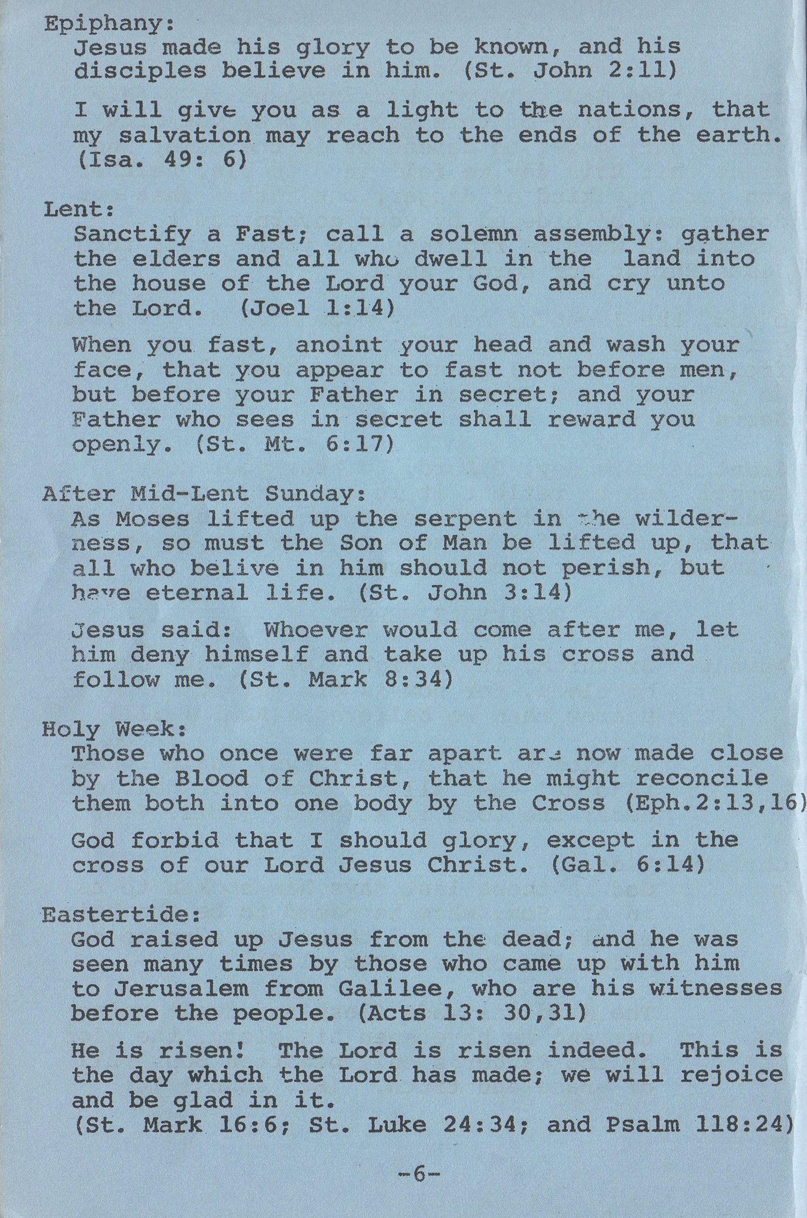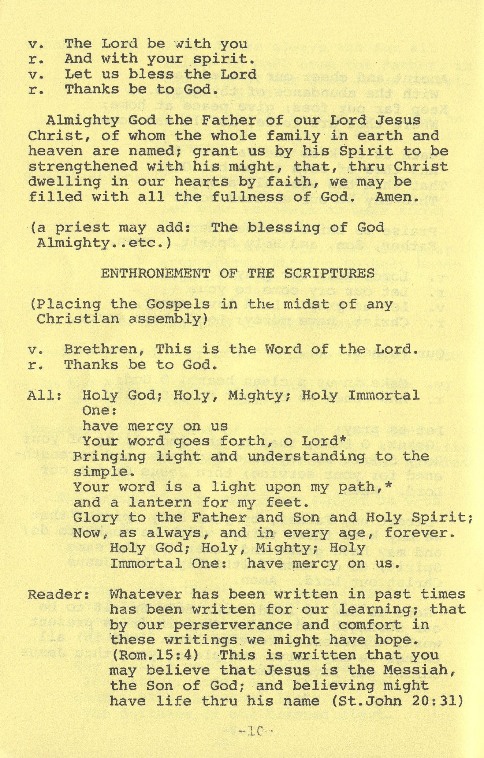 | Enthronement of the Scriptures | 10 |