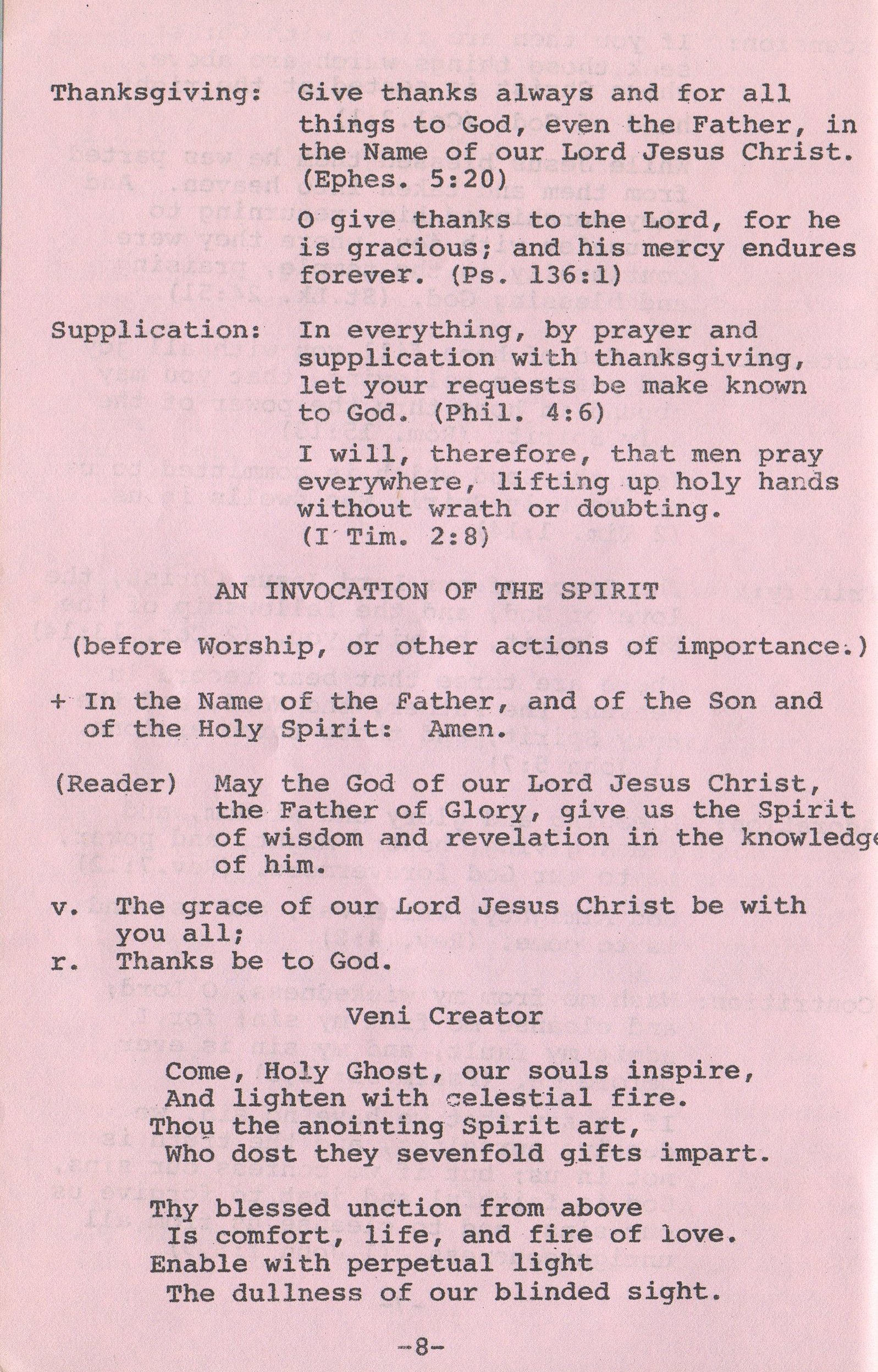 | Invocation of the Holy Spirit | 8 |