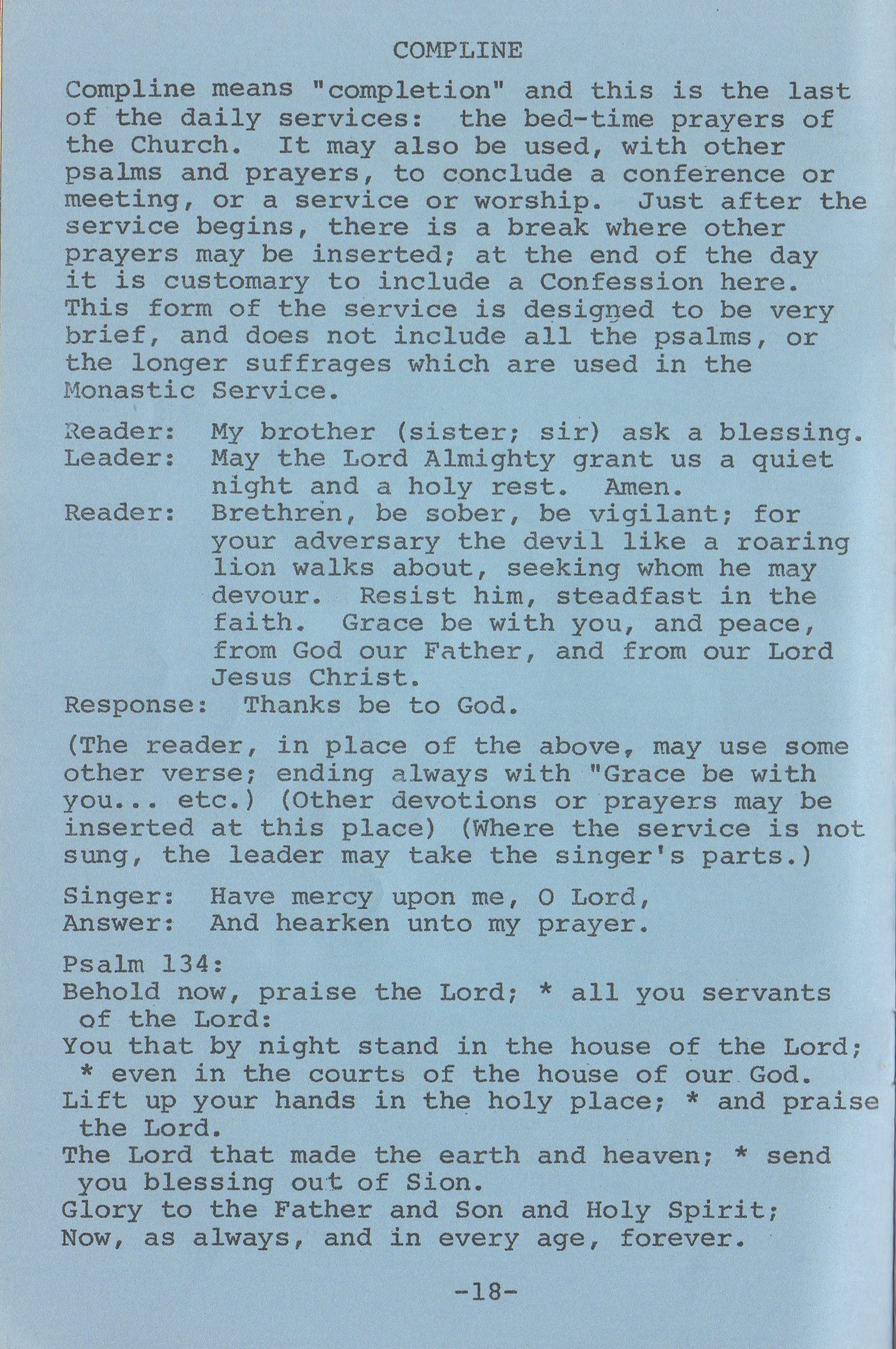 | Compline | 18 |